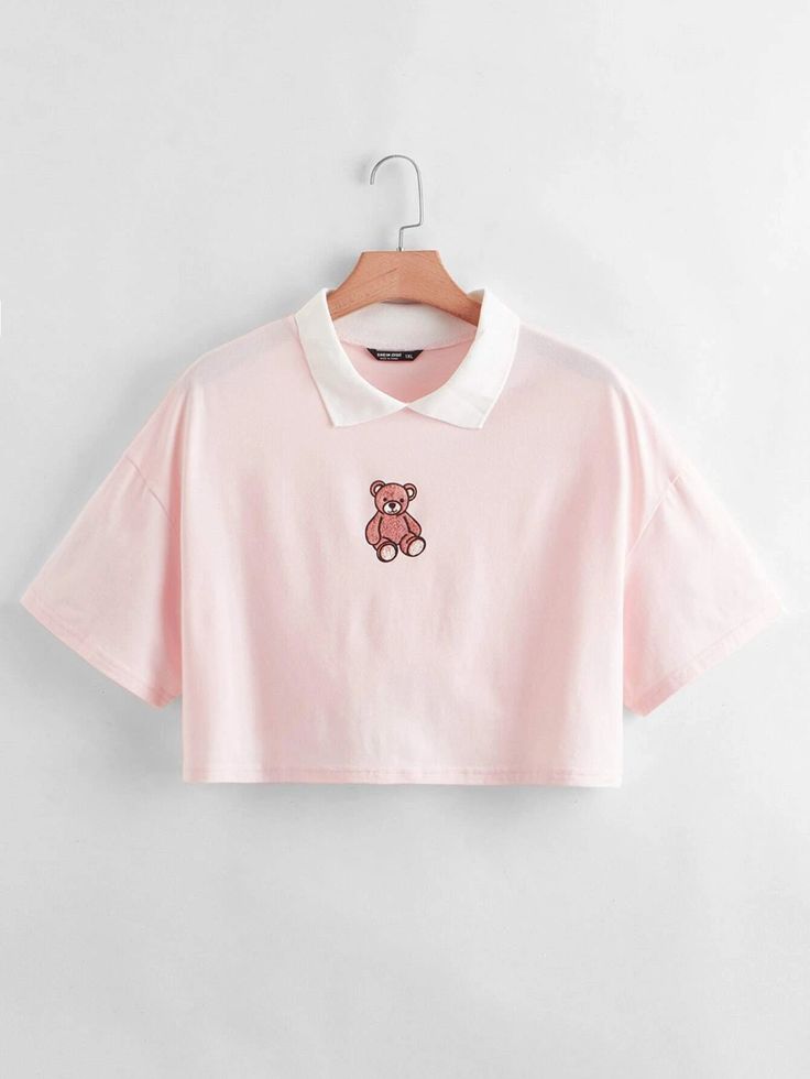 เสื้อครอปคอเหลี่ยมแต่งกระดุมน่ารักปุกปิก